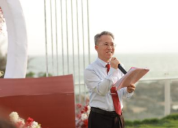 “情不知所起,一往而深,待到千帆過境。一角一屋檐,一雙人,一生一世。長相思兮長相憶,藝情濃兮懿情長,一世相伴,不改初衷?!被橐鼍褪呛拖鄲鄣娜藬y手一生的旅行,愿每對新人在今后的工作、學習和生活中,彼此陪伴,互敬互愛,共同擔負起家庭責任,感恩父母,珍惜彼此,相濡以沫。