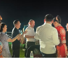 扔捧花環(huán)節(jié)當然是女孩們最激動的環(huán)節(jié),希望愛情降臨的幸運傳遞給每個未婚女青年?;槎Y的最后,大家合影留念,新娘們換上端莊大氣的傳統(tǒng)秀禾服,便開始了豐盛的婚宴。“酒既和旨,飲酒孔偕”,品嘗美味佳肴,大家舉杯共慶,煙花閃爍,將浪漫定格。