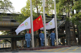 07:56,全體員工整裝肅立,儀態(tài)端莊地排列于宇新化工辦公樓前坪,靜候莊嚴(yán)時(shí)刻的到來(lái)。08:00,張總宣布升旗儀式正式開始,旗手們英姿勃發(fā),步伐鏗鏘,護(hù)送著五星紅旗入場(chǎng)。伴著雄渾激昂的《義勇軍進(jìn)行曲》,國(guó)旗在晨風(fēng)中徐徐升起,迎風(fēng)飄揚(yáng),全體員工行注目禮,現(xiàn)場(chǎng)氣氛莊重而肅穆。