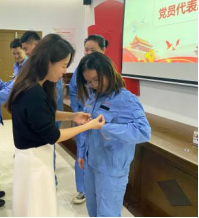 隨后進(jìn)行的是黨徽授予儀式,石化園區(qū)綜合黨委辦公室主任高潔、宇新化工黨支部書記譚良謀為黨員代表授予黨徽,并帶領(lǐng)大家宣讀入黨誓詞。重溫入黨宣言,全體黨員必將不忘初心,牢記使命。