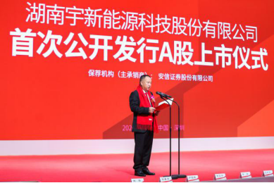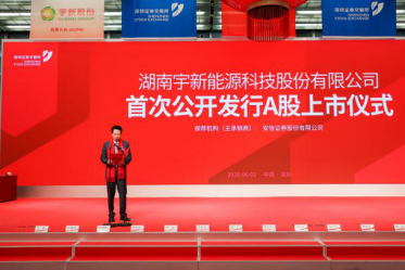 6月2日9時(shí)25分,隨著深圳證券交易所銅鐘的敲響,湖南宇新能源科技股份有限公司正式登陸資本市場(chǎng),成為湖南省長(zhǎng)沙市2020年首家中小板上市企業(yè)。長(zhǎng)沙市人大常委會(huì)黨組書(shū)記、主任謝衛(wèi)東見(jiàn)證上市并致辭。出席上市儀式的嘉賓還有:惠州市大亞灣管委會(huì)常務(wù)副主任黃偉忠;湖南省證監(jiān)局副局長(zhǎng)戚力;中海油惠州石化有限公司總經(jīng)理趙巖;中石化長(zhǎng)嶺煉化公司董事長(zhǎng)王妙云;中石化煉油銷(xiāo)售有限公司黨委書(shū)記王凈依;中海殼牌石油化工有限公司總經(jīng)理王瓊;長(zhǎng)沙市人大常委會(huì)秘書(shū)長(zhǎng)、辦公廳主任柳美景;中石化化工銷(xiāo)售有限公司華南分公司總經(jīng)理劉云中;埃克森美孚(惠州)化工有限公司總經(jīng)理李興軍;海南省第六屆人大常委會(huì)委員、海馬汽車(chē)股份有限公司副董事長(zhǎng)盧國(guó)綱;浙江石油化工有限公司黨委副書(shū)記張建國(guó);中共長(zhǎng)沙市雨花區(qū)區(qū)委副書(shū)記、區(qū)長(zhǎng)劉素月;惠州市環(huán)大亞灣新區(qū)管委會(huì)主任汪習(xí)清;南方科技大學(xué)清潔能源研究院院長(zhǎng)、創(chuàng)新創(chuàng)業(yè)學(xué)院院長(zhǎng)、澳大利亞國(guó)家工程院外籍院士劉科;安信證券股份有限公司投資銀行部董事總經(jīng)理郭明新及公司主要客戶和供應(yīng)商代表。