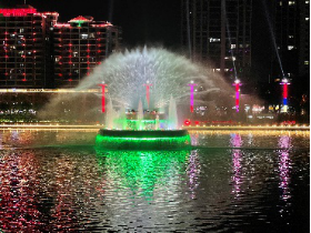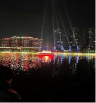 晚上夜游河源新豐江音樂噴泉。噴泉集聲、光、水、色于一體,由主噴和副噴兩部分組成。主噴169米的水柱直沖云霄,氣勢雄偉,蔚然壯觀,顯示出欲與天公試比高的氣派,在歡快愉悅的樂曲中,通過直噴、水簾、水浪、水松、內(nèi)拋、搖擺、編網(wǎng)等8種水型,不斷組合成數(shù)十個變幻莫測、絢麗多姿的噴泉景觀,有似流金溢彩、火樹銀花,有如孔雀開屏、彩虹飲澗;是水的畫、燈的詩,給人以美的享受。