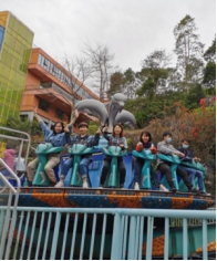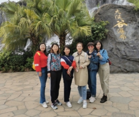 游園踏青活動出行日不巧碰上了綿綿的春雨,但依舊擋不住大家踏青的好心情。大巴車在歡聲笑語中緩緩地開向目的地——東部華僑大峽谷,這里有著中國最大的人造瀑布。云霧與水汽交融,生態(tài)公園大峽谷在霧的籠罩下仿佛一片云海世界。而氣勢磅礴、蔚然壯觀的瀑布總是讓人不禁想到詩仙的詩句:“飛流直下三千尺,疑是銀河落九天。”在這壯闊的景象前,大家齊齊合影留念。