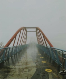 若隱若現(xiàn)的霧氣中,細細碎碎的雨滴就像調(diào)皮的小孩。倚傘伴友,我們在淅瀝瀝的小雨中坐上云海索道。纜車緩緩移動,從高處俯瞰森林,草木葳蕤,郁郁蔥蔥猶如綠色的海洋,在霧氣的渲染下如云深不知處的仙境一般。坐上觀景臺,眼前只見白茫茫的一片;在霧蒙蒙的玻璃橋上行走,則似仙子騰云駕霧一般。