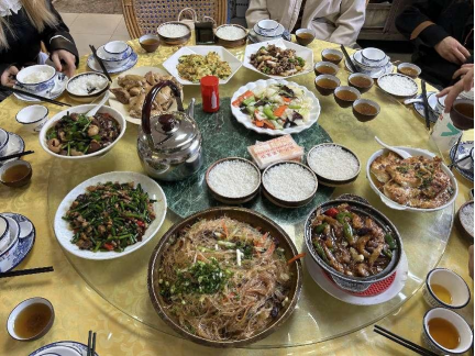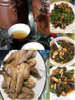 中午時分,女神們來到環(huán)境優(yōu)美的鐵爐農(nóng)家菜館,品嘗當(dāng)?shù)赜忻奶厣朗场釉纯图也?。農(nóng)莊古色古香,沿著山路而建,曲徑通幽,潺潺的流水伴著小鳥的啼聲,陰涼的清風(fēng)吹過,帶走了艷陽的燥熱。大家品嘗了當(dāng)?shù)赜忻墓Ψ驕⒇i血腸、客家釀豆腐、鹽焗雞……
