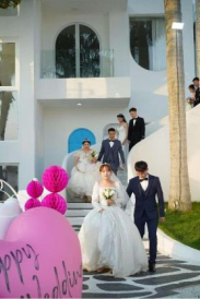 扔捧花環(huán)節(jié)當(dāng)然是女孩們最激動(dòng)的環(huán)節(jié),希望愛情降臨的幸運(yùn)傳遞給每個(gè)未婚女青年?;槎Y的最后,大家合影留念,新娘們換上端莊大氣的傳統(tǒng)秀禾服,便開始了豐盛的婚宴。“酒既和旨,飲酒孔偕”,品嘗美味佳肴,大家舉杯共慶,煙花閃爍,將浪漫定格。