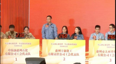 11月25日下午,廣東省惠州市大亞灣區(qū)總工會在中海油惠州石化有限公司惠煉家園技能鑒定培訓(xùn)中心多功能廳舉行以“不忘初心強(qiáng)黨性,牢記使命譜新篇”為主題的黨史知識競賽,我司派代表隊(duì)參加。
