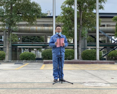 升旗禮畢,旗手歸位。接下來是員工代表祝呵呵作國旗下發(fā)言。來自宇新新材班組的祝呵呵分享了順酐開工中的一些感想:這次的順利開車,上至胡董,下至員工,無不讓我感受到公司良好的工作氛圍和強大的凝聚力。在即將來臨的新的一年里,面對新的任務(wù),祝呵呵代表全體員工鄭重承諾:我們有決心、有信念克服各種困難,高標(biāo)準、高質(zhì)量、高效率地完成公司交給我們的神圣使命。