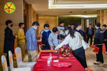 會場張燈結(jié)彩,洋溢著喜慶祥和的節(jié)日氣氛。領導、同事們陸續(xù)到場,簽到并合影留念,燈光閃爍,火紅的背景映著大家燦爛的笑容格外鮮艷。